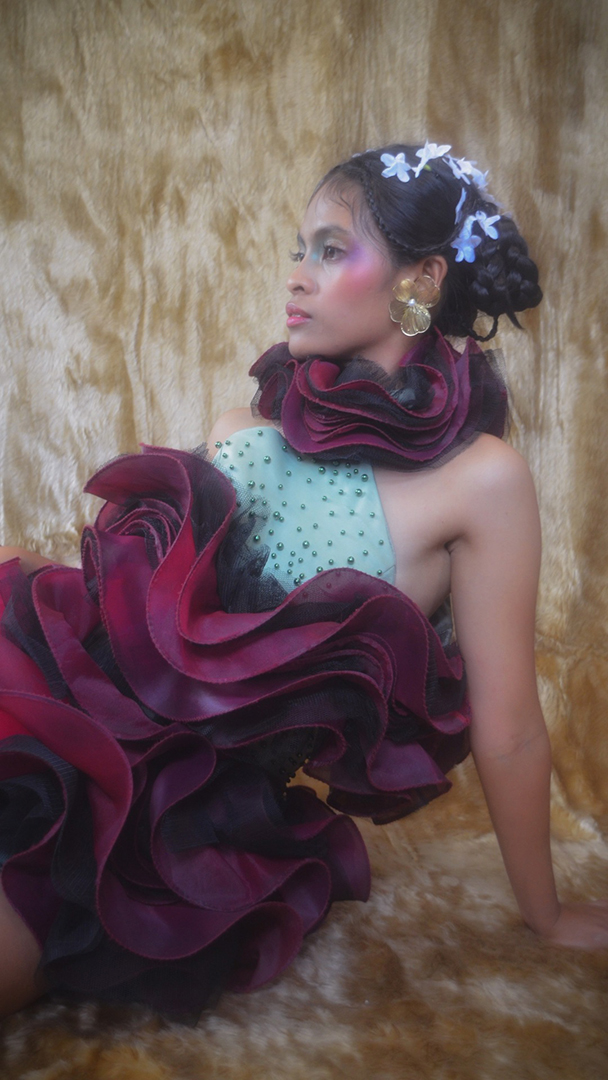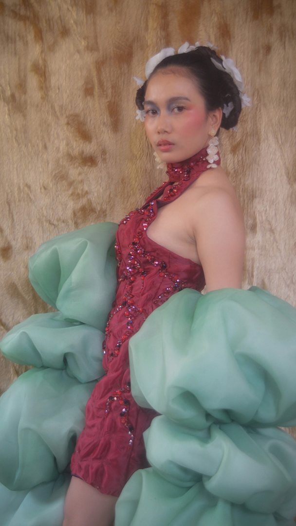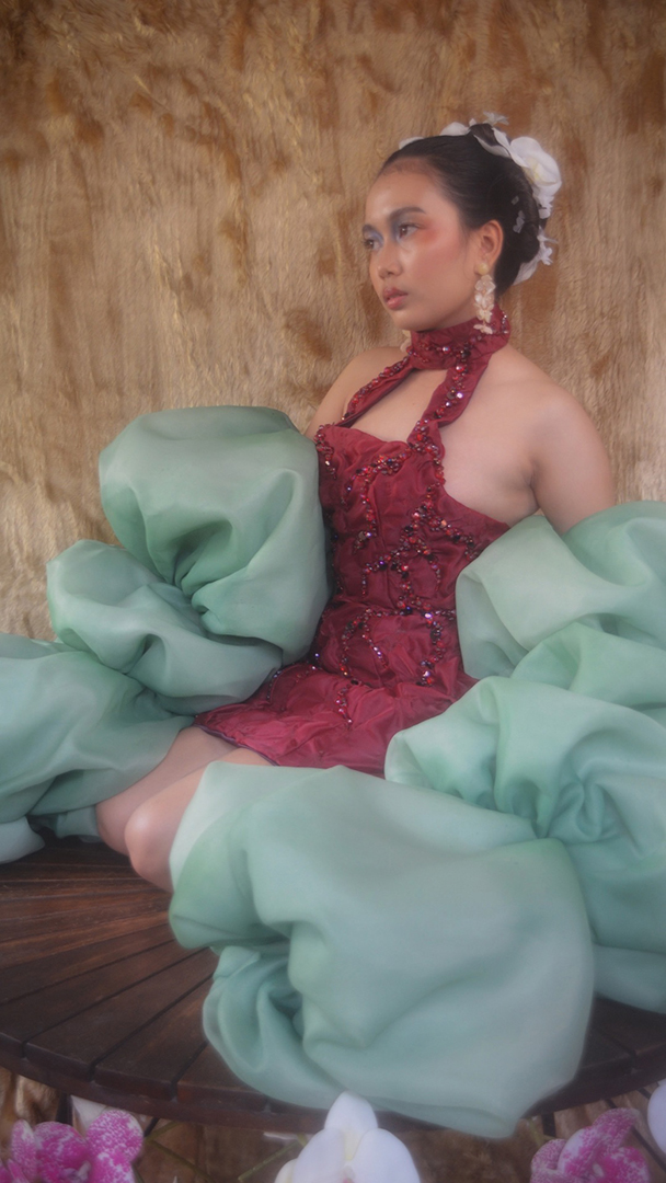 Beneath the Ribs unfolds as a quiet confession. A collection born from the designer’s encounter with grief and rage. It tells of emotions trapped beneath the skin, where grief lingers softly and rage presses against the ribs, desperate to break free. Inspired by the deceptive beauty of carnivorous plants, the silhouettes merge femininity and ferocity, fragility and control. Beadwork glistens like dew caught in a web, symbolizing the delicate yet suffocating nature of entrapment. Through each piece, Beneath the Ribs reveals the fragile balance between pain and power — between what withers and what still fights to bloom.