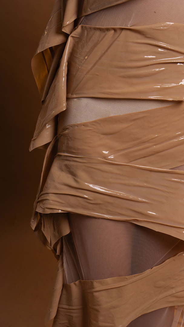 “Bound Within” explores the emotional journey of self-identity, body image, and societal pressures, offering unique pieces that empower wearers to embrace their own skin. The goal of this collection is to visually express the tension between being trapped by skin insecurities and the freedom that comes from embracing one's true self. At its core, the theme reflects the duality of skin—serving both as armor and as a prison.