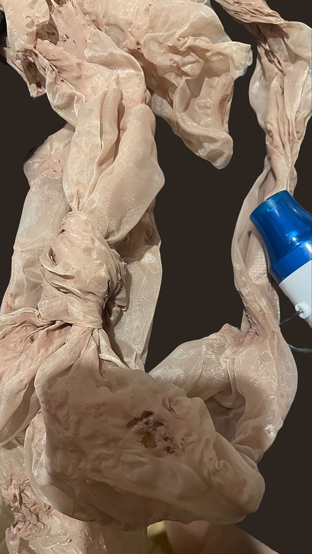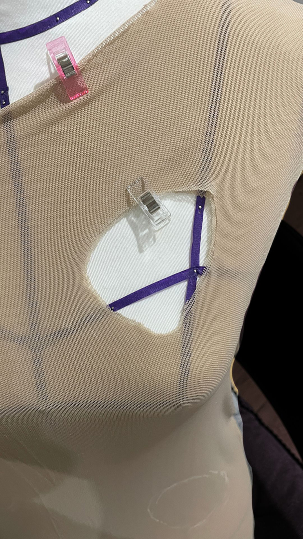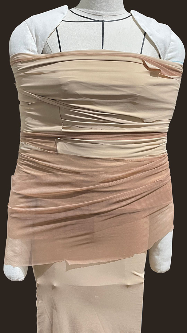 The most challenging part of designing this collection was figuring out how to bring my vision to life, from conducting research to discovering which techniques and fabric manipulations worked best. Pushing through these challenges taught me to trust the process, even when it took multiple attempts to achieve my intended vision. Through experimentation, I learned that persistence and openness to failure are important in developing a strong design. Because of this, the part of my design process I would want people to see the most is the experimentation phase, where I explored different textile manipulations using liquid silicone and liquid latex to create something new. This stage shows the hard work behind the collection and reflects my willingness to keep experimenting, making mistakes, and pushing forward until the final look truly came to life.