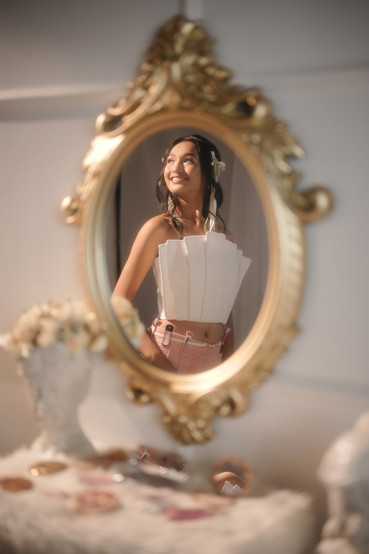 "“DALAGITA ” is inspired by the designer’s personal journey through puberty, reflecting the emotional and transformative experiences of a young girl. Her grandmother, a significant influence, taught her sewing, cross-stitching, and diamond painting. The