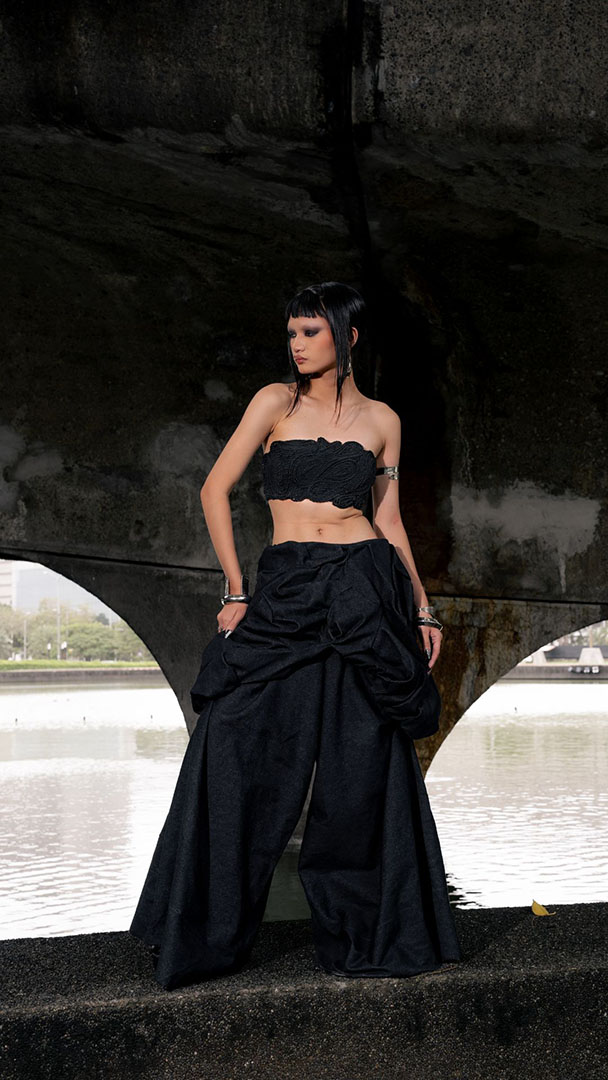 Di Yan Praktikal is a collection that explores the tension between practicality and passion. Inspired by the designer’s own experience of being told to “be practical,” it redefines what it means to dream boldly in a world that values conformity. The collection challenges the belief that dreams and creative pursuits are “worthless” or “walang patutunguhan.” It serves as a reminder that passion and individuality should never be silenced by what the world deems practical—and that what others see as worthless can be transformed into something priceless.