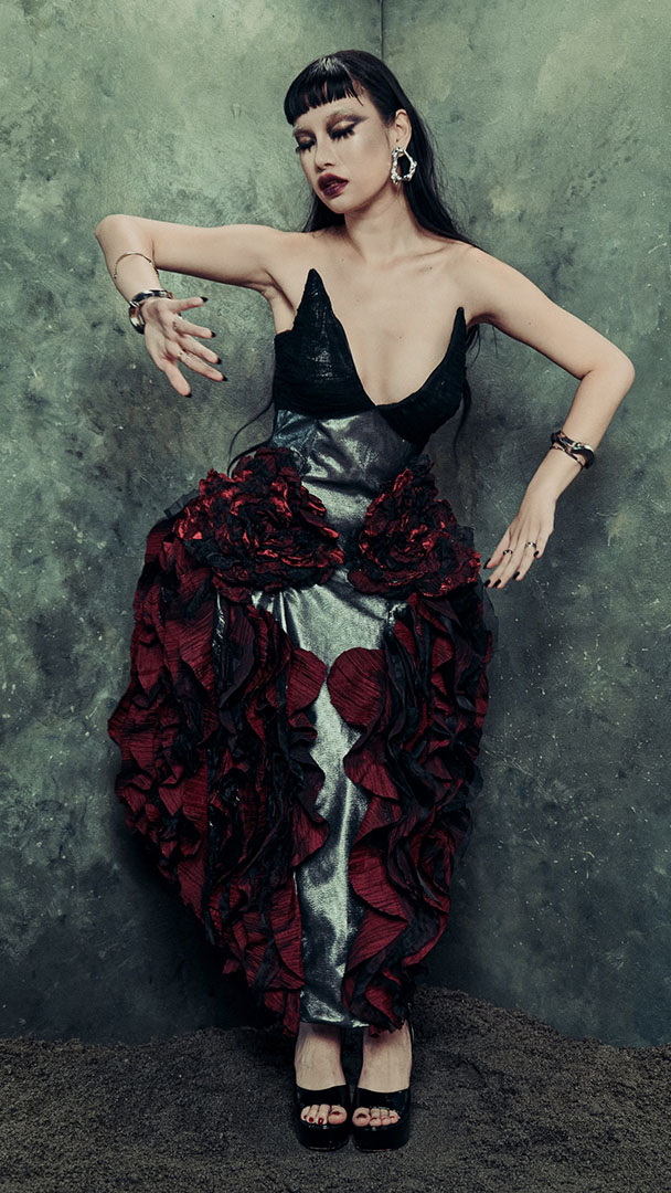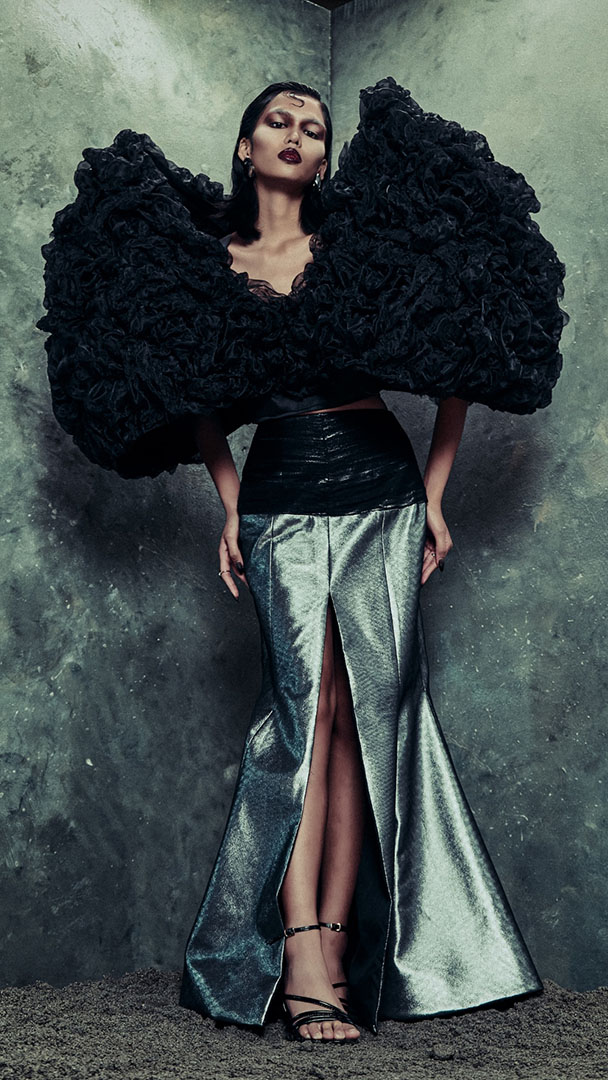 FATAL DESTRUCTION is a collection that explores the haunting irony of coping mechanisms, how the very things we turn to for comfort often become the source of our physical and emotional destruction. Through a raw, visual storyline, the collection follows an individual’s descent as they rely on these mechanisms, blurring the line between healing and harm. It challenges the normalization and romanticization of self-destructive behaviors in today’s culture, confronting viewers with the quiet damage we overlook. Fatal Destruction is not just fashion, it’s a mirror, a message, and a call to recognize the pain hidden behind what we call “coping.”