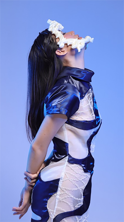 The collection begins with gentle, flowing silhouettes and gradually transforms through 3D-printed forms, building layers that resemble the armor I learned to wear over time. By blending softness with structure, each piece reflects how technology can both conceal and reveal the emotions we carry within.