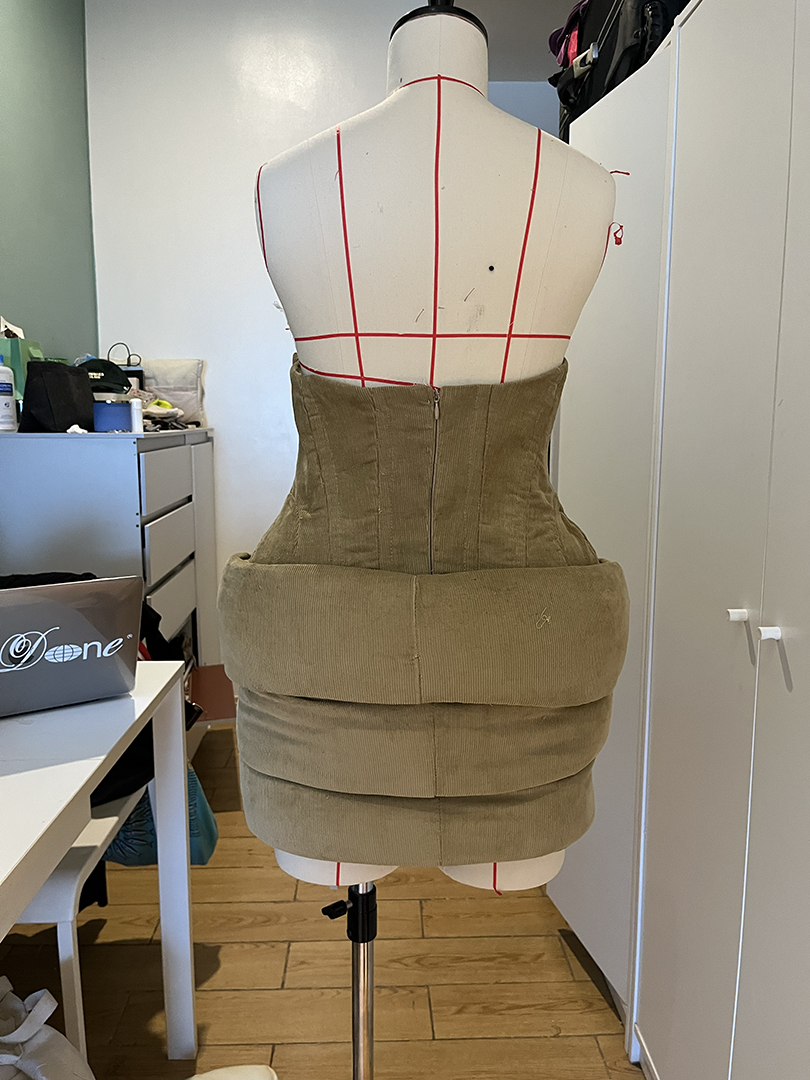 Through layered fabrics, rounded silhouettes, and tactile surfaces, Panelé tells a story of nostalgia and becoming — how something ordinary, like bread, can rise into something meaningful. It is both a tribute to the warmth of home and a meditation on change — how heat, patience, and craft shape not only what we make, but who we become.