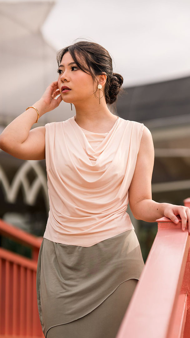 J.Eli’s collection, Grace In Transit, is a celebration of effortless elegance and comfort for the woman on the move. Inspired by the beauty of nature—each piece blends soft, natural tones with graceful draping evoking goddess-like ease. Designed to flow seamlessly from formal to casual, this versatile line empowers confident, busy women to feel both stylish and comfortable—ready to embrace every moment with freedom and poise.