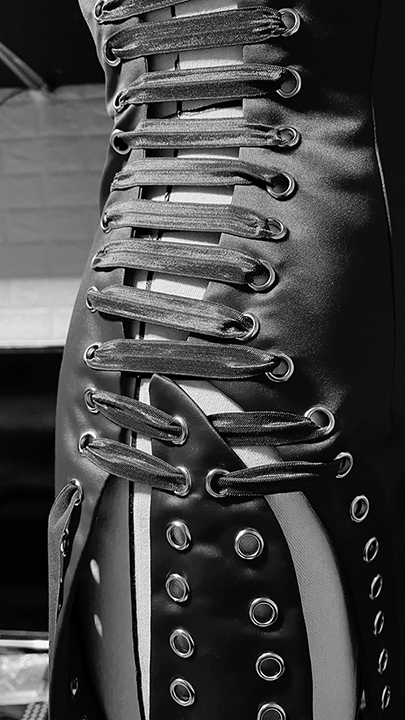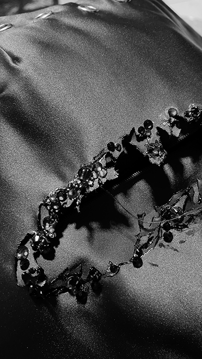 Syncopated Seduction explores the intricate connection between a medical commodity and art expression, the combination of cardiac arrhythmia and burlesque drawn from the designer’s encounter and creative interest.