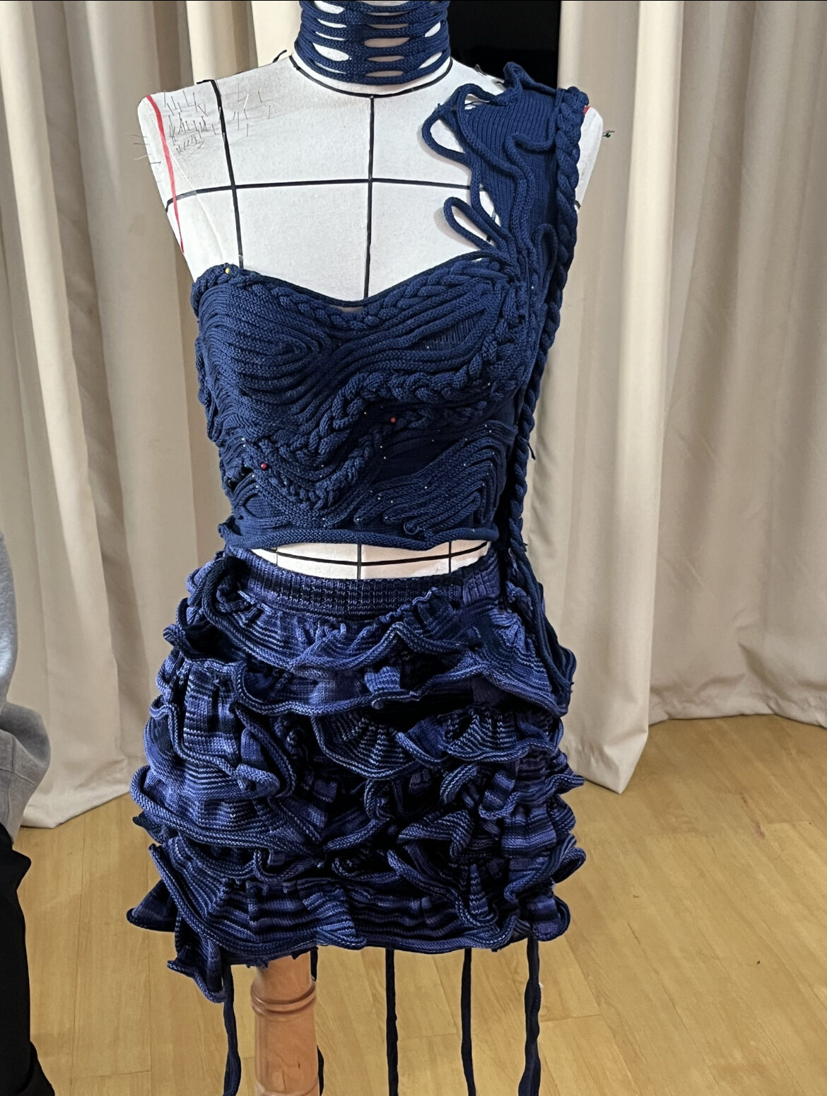 Amanda Jane Laguipo, a fashion designer whose work explores the boundaries of machine knitting by blending traditional craftsmanship with modern design sensibilities. I specialize in using natural and sustainable materials, often incorporating upcycled yarns and fibers sourced from thrifted pieces. My design philosophy centers on textile experimentation, where texture and form emerge organically through process-driven creation. Rooted in curiosity and sustainability, my work reflects a continuous dialogue between material, technique, and innovation.