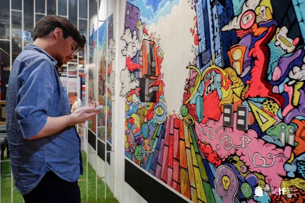 Picture of Tomorrow was created by Juaquin Pineda, a student volunteer and Architecture graduate from Benilde. It celebrated imagination as the starting point of change. Inspired by HiFi’s startups, the mural paid tribute to initiative and persistence, showing how ideas move from sketches to prototypes to thriving enterprises. A rainbow road wound forward, reminding viewers that a colorful future awaits those who dare to create it.
