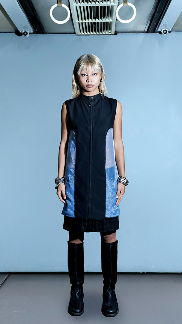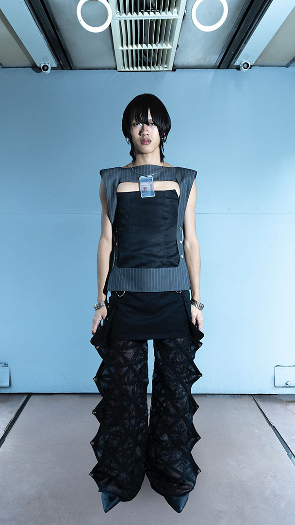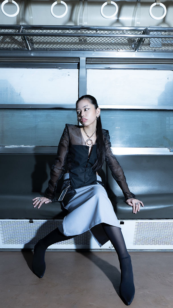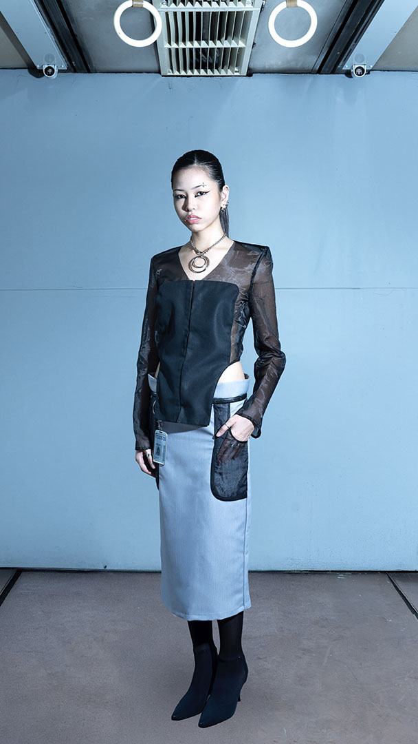 LRTW reimagines office wear as a reflection of Gen Z’s shifting approach with work, success, and self-expression. In motion, like the rhythm of the LRT, movement traces through lines and layers—an intersection of transit and transformation. Each piece moves through the spaces between order and individuality, redefining the subtle dialogue of what it means for this generation to dress for work.