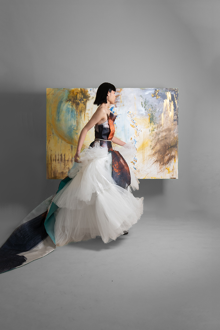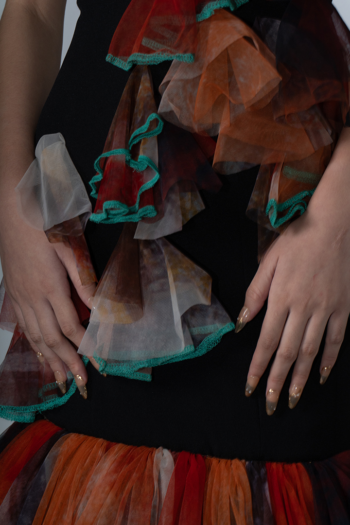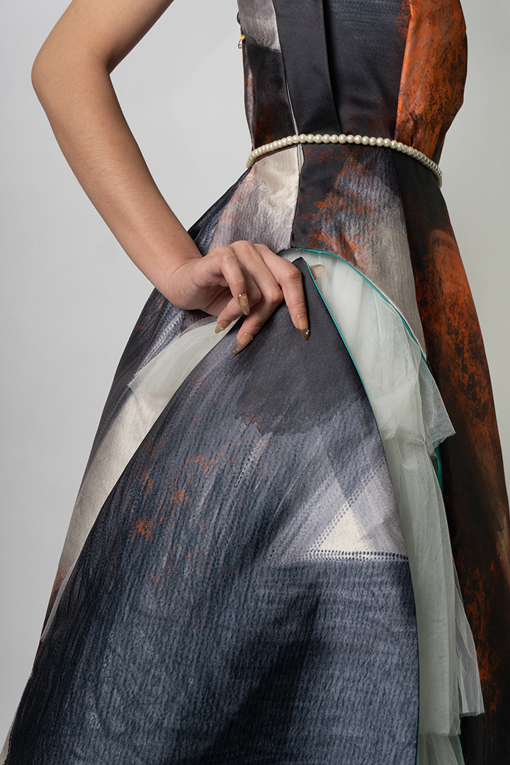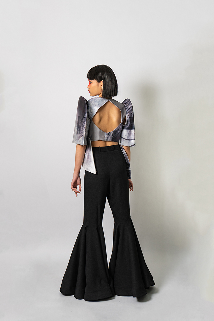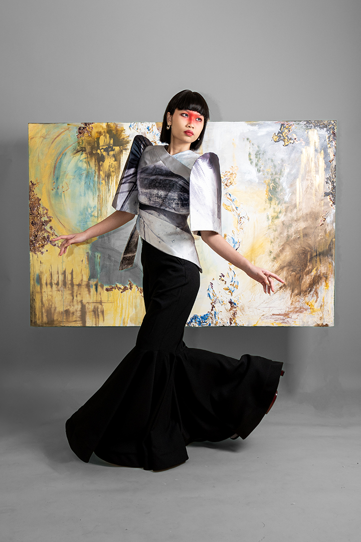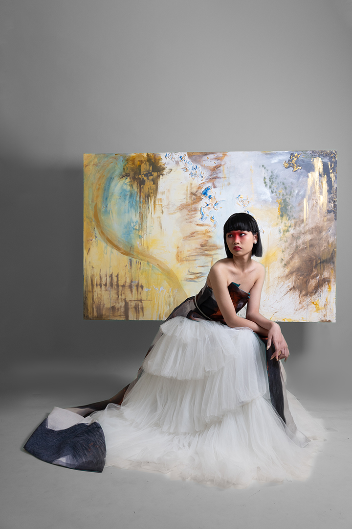 Mangan Ta, kapampangan for “Kain na,” draws inspiration from the process of cooking shrimp; an act of love rooted in Kapampangan traditions and cuisine. It reflects the designer’s exploration of translating personal memories and artistic practice into fashion, while reinterpreting elements from her mother’s capstone collection back in UP Clothing Tech.