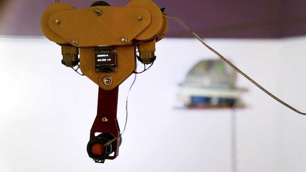 From there, the exhibit opens into other explorations. Pandega’s A Pervasive Rhythm turns car blinkers into eyes, pulsing with sound and light. The irony is clear. Blinkers are meant to signal a turn, a change in direction, yet here they are installed to blink endlessly. The repetition becomes a static display, a rhythm that never leads anywhere. The piece expresses inevitability, like the human need to blink, but it does so through a system locked in constant repetition. What should mark change instead becomes a reminder of how change itself can feel inevitable and mechanical.