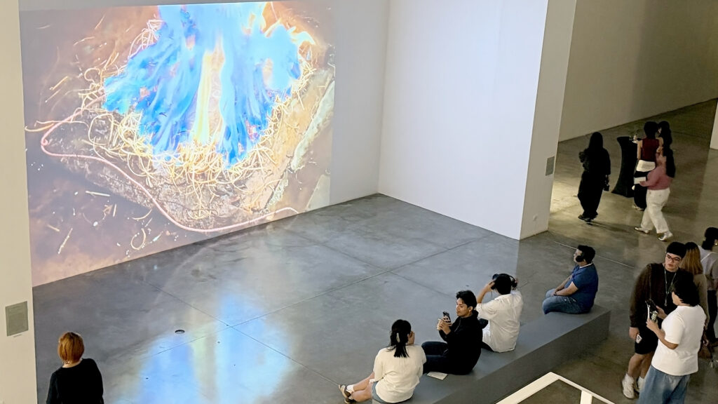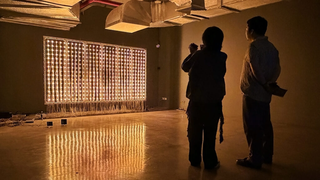 The first encounter sets the tone. David Medalla’s Cloud Canyons rises so slowly that the foam towers seem frozen. You watch, and nothing changes, until suddenly a bend or collapse shifts the form. On the wall opposite, Bagus Pandega’s Indecisive Things Series loops LED patterns with such consistency they feel static, even though the system is always moving. One is organic, the other electronic. One collapses, the other repeats. Yet both create the same effect, a sense of stillness that depends on how long you look. Physics is always at work, but perception decides whether you see change or miss it. Their contrast makes them similar. Foam eventually gives way, lights keep looping, and both ask us to notice how stillness can be deceptive.