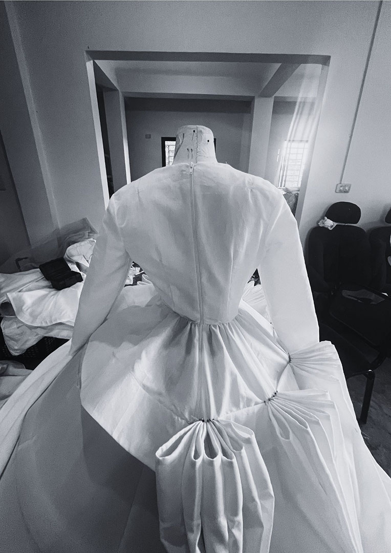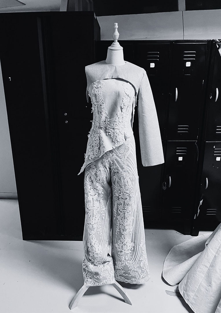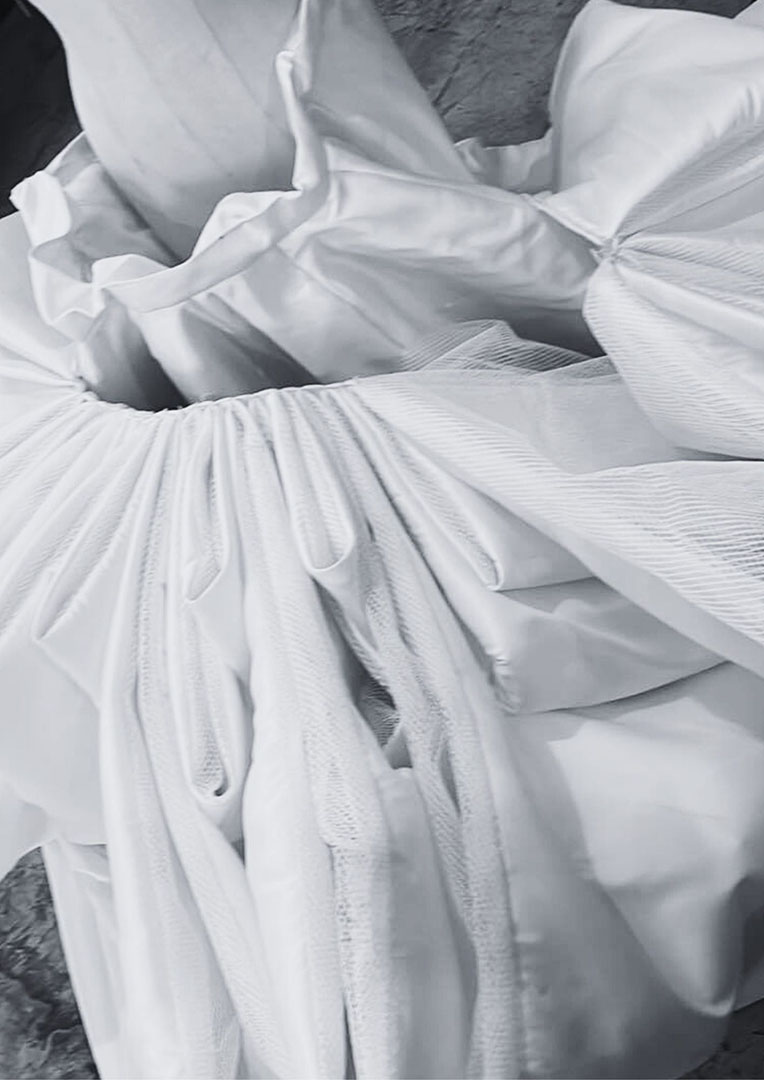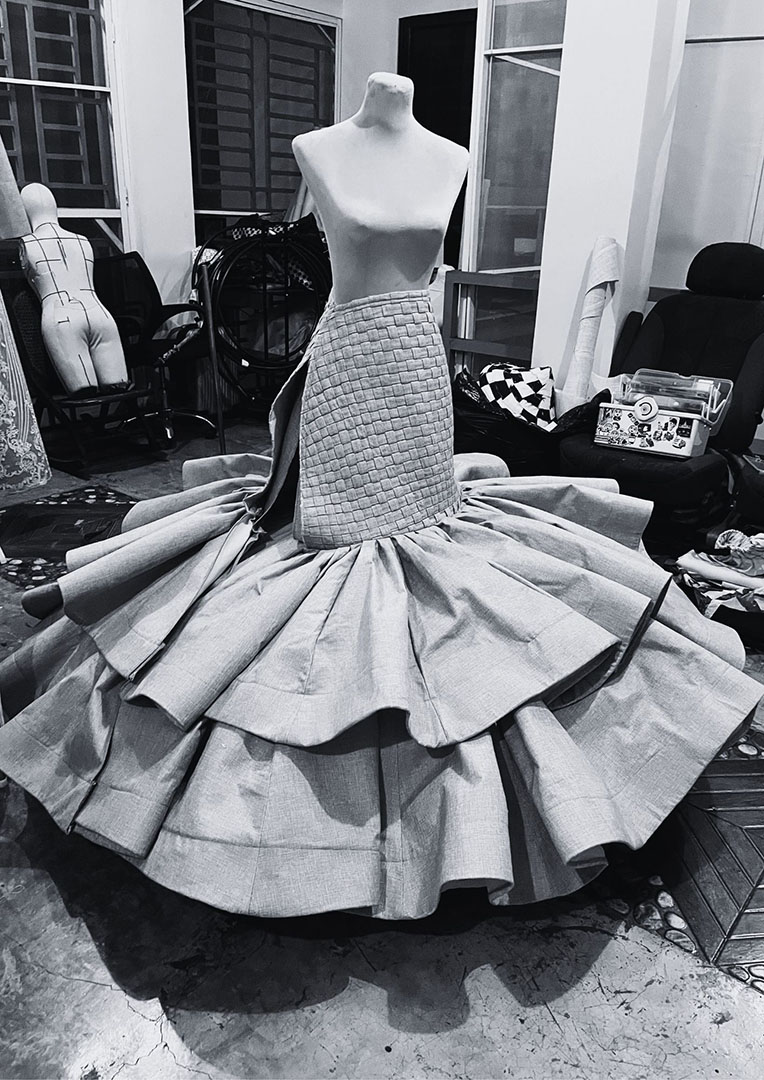 The Kabsat Collection draws inspiration from the innocence of childhood memories and the timeless beauty of traditional provincial weddings (nakasanayang kasal), reimagining these cherished traditions through fusion bridal wear and couture gowns that blend nostalgia with contemporary elegance. Rooted in a personal story, the collection incorporates vintage inabel fabric passed down from my mother’s siblings breathing new life into heirloom textiles that honor family roots and connect the past to the present. By transforming table skirting techniques often seen in provincial wedding venues into refined couture detailing, the collection elevates familiar elements of celebration into symbols of craftsmanship and cultural pride. Each piece reflects the grace of provincial heritage and the intimate bond between siblings, embodying love, unity, and identity, while offering a heartfelt expression of memory, transformation, and connection for the modern dreamer.