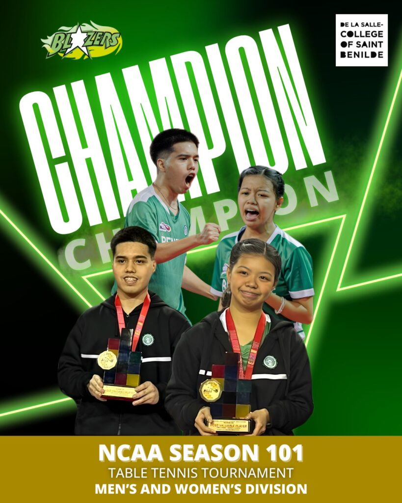 Congratulations to our Benilde Blazers Blazing Paddlers and Lady Paddlers for securing the NCAA Season 101 Table Tennis tournament championships!