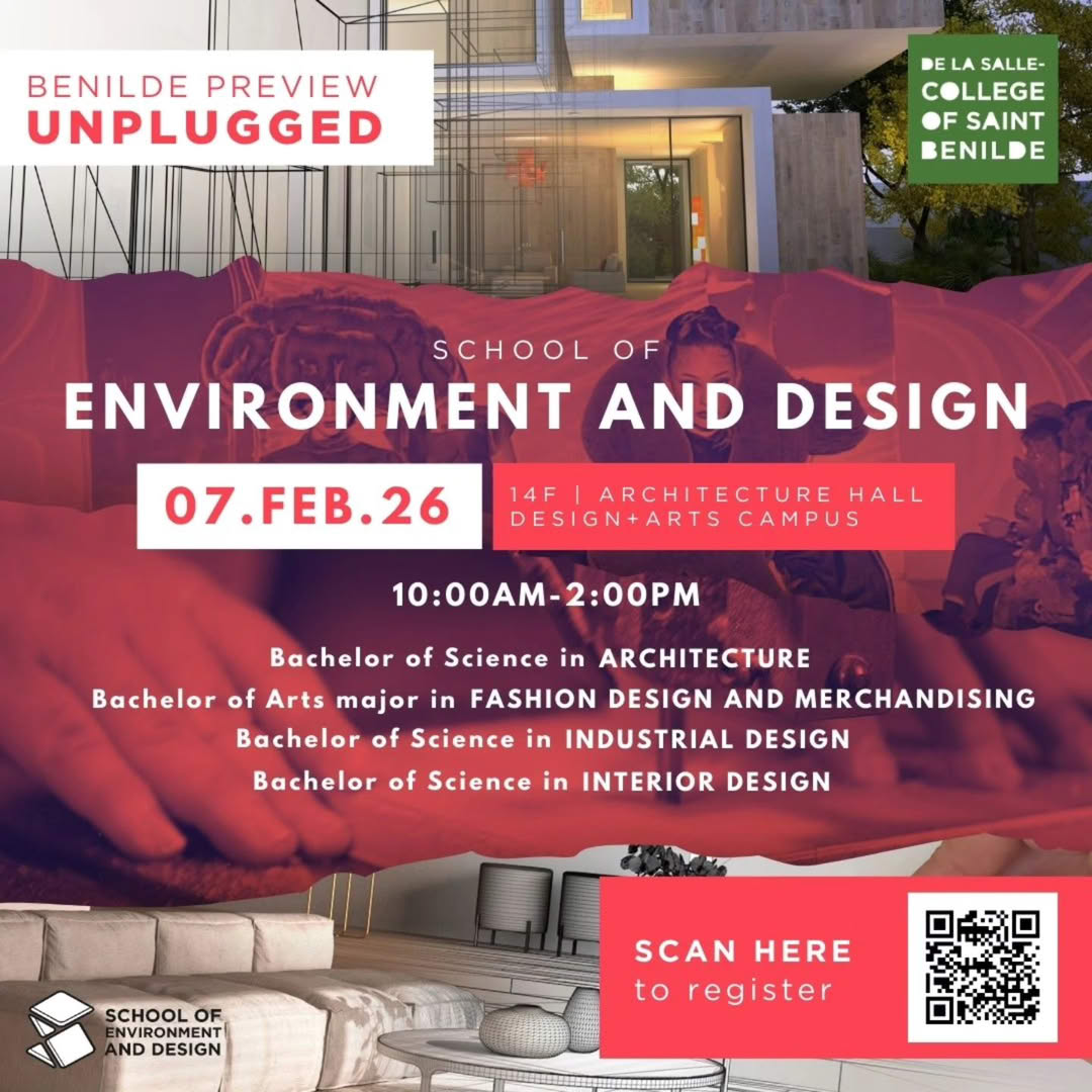 The Benilde Marketing Center will hold Benilde Preview: Unplugged 2026 on February 7, 2026, from 10:00 AM to 2:00 PM at the Design and Arts Campus, this time featuring the School of Environment and Design. The program will highlight campus tours, faculty introductions from Architecture, Fashion Design and Merchandising, Industrial Design, and Interior Design, and opportunities for Grade 11–12 students to engage with current Benildeans.