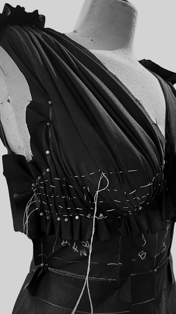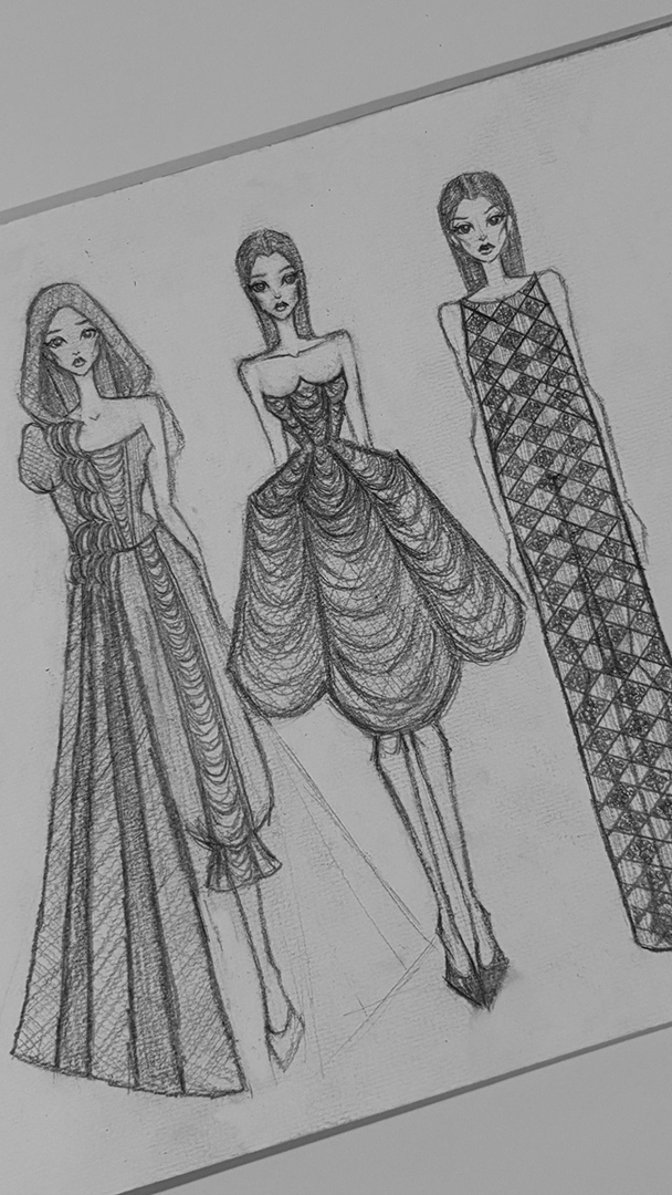 The five designs evolve through time, beginning with silhouettes from the Renaissance, Medieval, and Edwardian periods before gradually transitioning into contemporary forms. Each look marks a historical shift, illustrating the journey from persecution to power. This collection honors all Dames—past, present, and future—who continue to rise, reclaim their strength, and redefine what it means to lead.