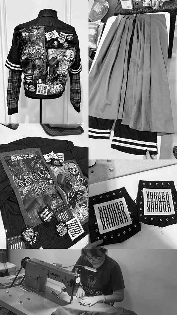 The most challenging part of designing CLASS DISMISSED. was finding a way to make the collection stand out while still staying true to XAKURA’s identity. Pushing through this taught me that strong branding and a clear concept are just as important as the garments themselves. This collection made me realize that my identity as a designer is rooted in confidence and unpredictable marketing strategies, rather than trying to please or impress others. While most of my previous work focused on womenswear, shifting to menswear clarified my direction, as I realized it could create more intrigue and desire within my target market. I began to see that XAKURA could feel more recognizable and impactful when worn by men, especially in expressing rebellion, confidence, and presence. As the process evolved, I became more intentional with branding and marketing, and the biggest shift came when rebellion moved beyond aesthetics and became the foundation of XAKURA’s voice.