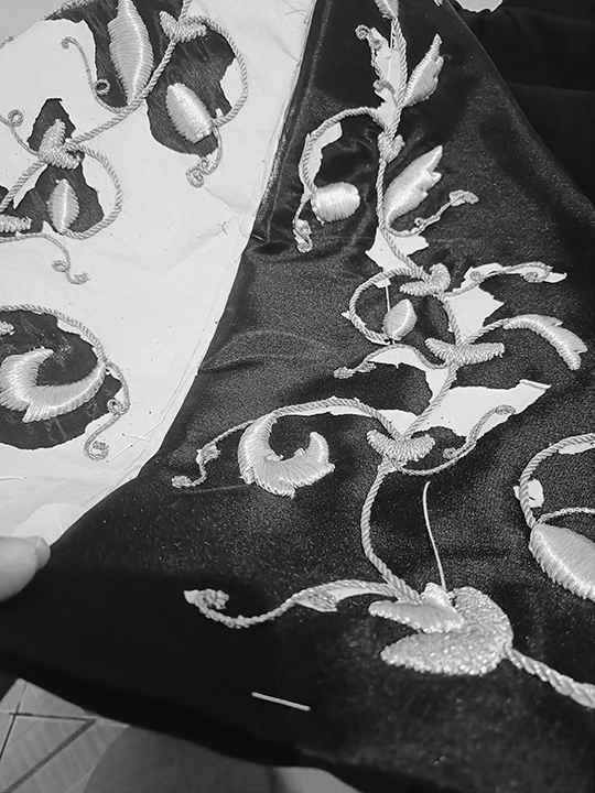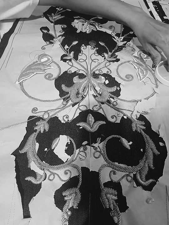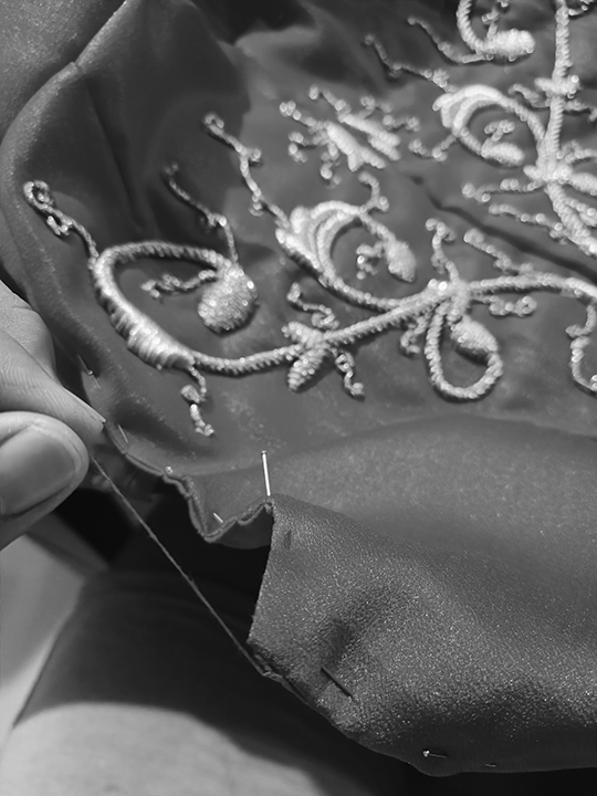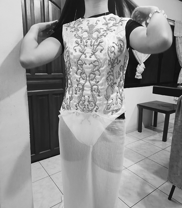 The hardest part of bringing this vision is making this collection come to life. So much effort was taken to ensure that all religious symbols and elements were used sensitively and respectfully. It was also crucial to make it obvious that these designs are meant to be women’s couture pieces, rather than liturgical vestments. Because of the nature of my selected theme, I got a variety of remarks and criticisms throughout the process of making this collection. In response, I used reflection and prayer to find clarity and assurance, seeking indications that I was headed in the right direction and letting faith, purpose, and intention direct the creative process.