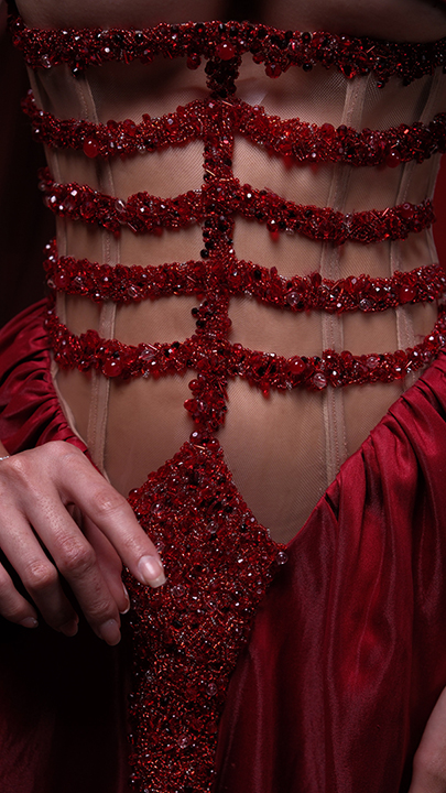 The concept embodies a layer of emotional depth and a desire to turn a vulnerability into an artistic statement, featuring silhouettes that will play contrasts–concealment and exposure, structure and fluidity, and vulnerability and empowerment.