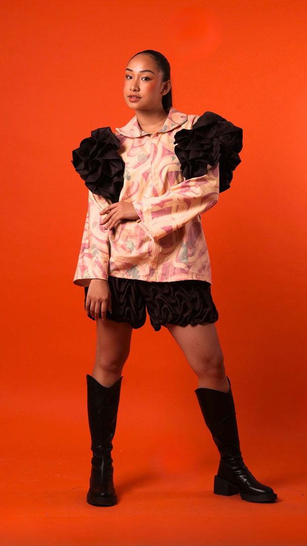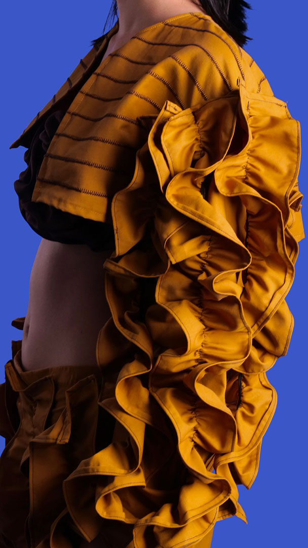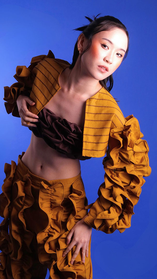 In exploring this concept, I asked myself: “How can I turn the essence of noodles into wearable pieces?” I chose barnyard millet as my core inspiration, using smocking and stitching techniques to replicate the strands' texture and transformation. The result is a collection that captures both movement and depth fusing raw material and meaning into an avant-garde expression of change, structure, and style.