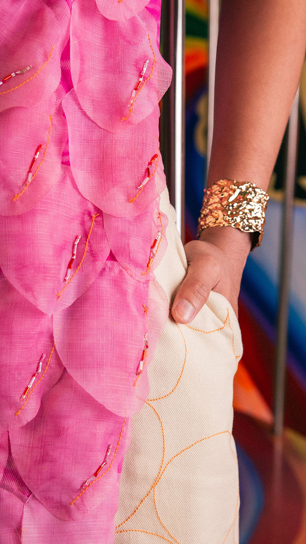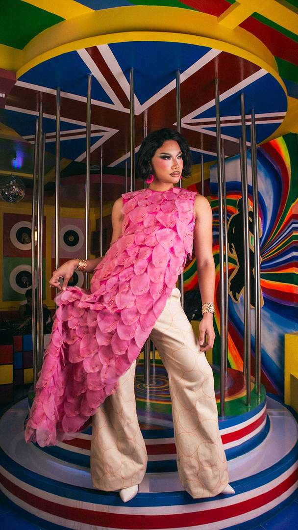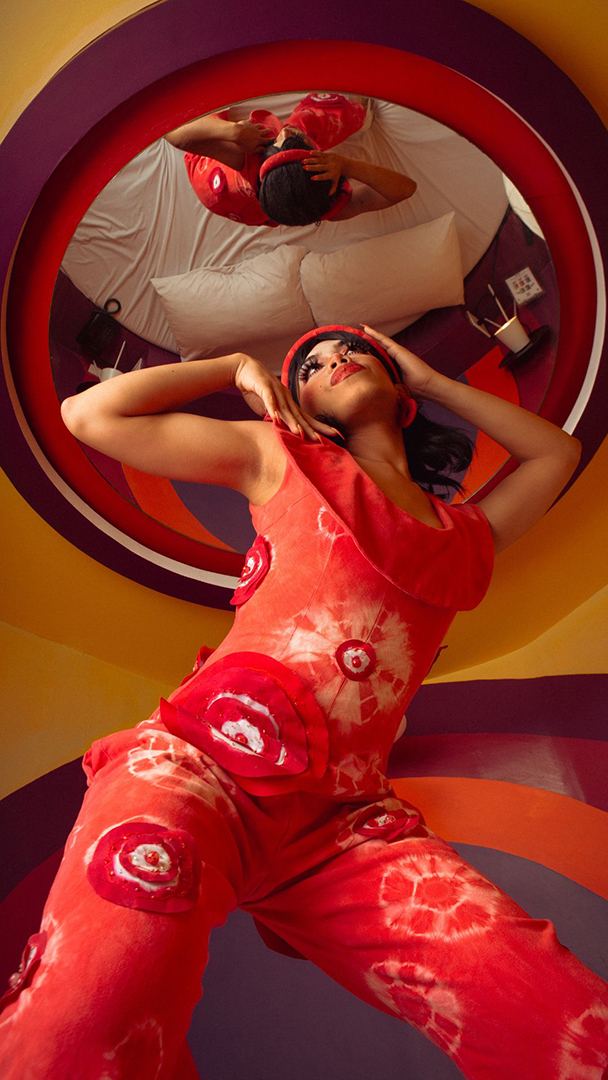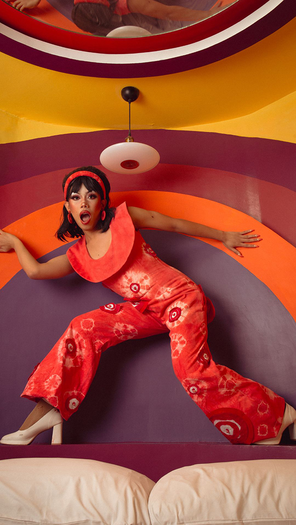 This collection is a fusion of my passion for biology and my love for retro fashion. Since childhood, I’ve been captivated by nature’s delicate balance of order and chaos, especially within the microscopic world. Drawing inspiration from the intricate, symmetrical patterns of cells, I’ve translated these into bold visuals using shibori textile dyeing techniques. Centered around five animal classes—mammals, reptiles, amphibians, birds, and fish—each piece features close-up and microscopic imagery as the foundation for distinct patterns, with every fabric manipulation showcasing the raw, organic beauty of biology. Balancing this scientific influence is my admiration for mid-century fashion—its bold silhouettes, vibrant colors, and unmistakable charm. The playful, campy nature of the retro aesthetic offers a rich canvas for this collection, blending vintage flair with scientific curiosity to create wearable art.