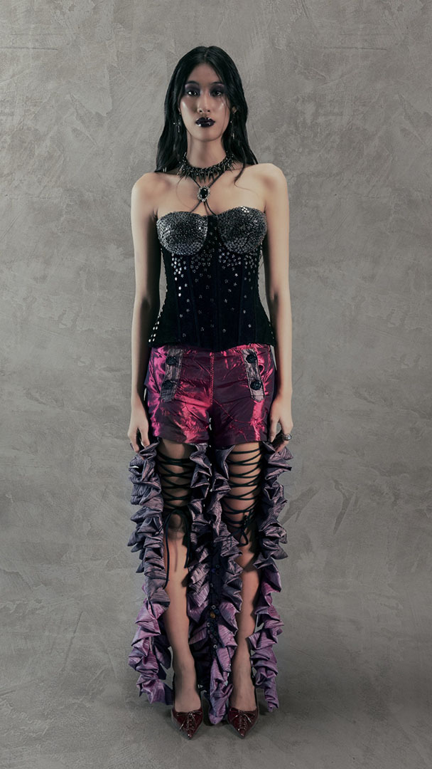 There's a particular kind of silence that lingers after adolescence, especially within the walls of a catholic all-girls school institutions where order outweighed individuality. The Wild Child is a collection that reclaims the rigid school uniform as a canvas for defiant artistry, transforming symbols of control into declarations of selfhood. Inspired by the theatrical chaos of the Ballets Russes, it collides discipline with rebellion through exaggerated silhouettes, mismatched prints, and intricate patchwork. Each piece becomes a visual dialogue between repression and self-discovery, echoing the quiet rebellions once tucked beneath pleats and collars. Ultimately, The Wild Child becomes an ode to the girls who grew up within those caged halls that are restless, aching, and determined to reclaim their voices.